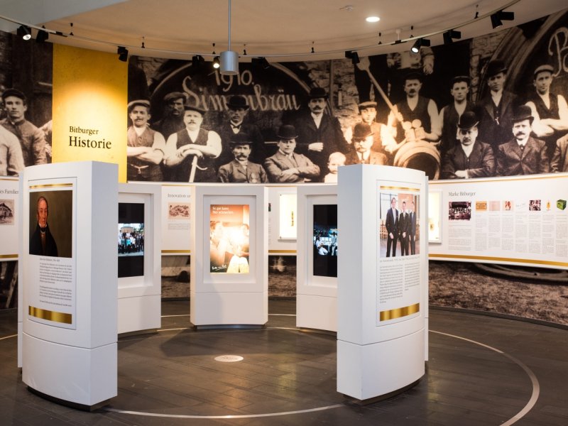 Die Braustätte der Bitburger Biere ist in den 1980er Jahren in den Süden der Eifelstadt umgezogen, aber die Brauerei ist bis heute im Herzen der Stadt präsent. Das historische Brauereigebäude, dessen Grundmauern aus der Mitte des 19. Jahrhundert stammen, beherbergt heute auf 1 700 Quadratmetern die Bitburger Erlebniswelt. Hier können Besucher das historische Sudhaus mit seinen blanken Kupferkesseln ebenso hautnah erleben wie das alte Kesselhaus mit den überhohen Decken und den Resten des fast 100 Jahre alten Schorn­steins. Bei einem geführten Rundgang sehen, hören, fühlen, riechen und schmecken Sie, wie Bier gebraut wird und was Deutschlands Fassbier Nummer eins so besonders macht.