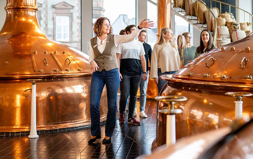 Mitten in der Eifel, mitten in der Bierstadt, begrüßt die Bitburger Erlebniswelt jährlich Tausende Besucher. Das ursprüngliche Brauereigebäude, dessen Grundmauern aus der Mitte des 19. Jahrhunderts stammen, beherbergt heute auf 1 700 Quadratmetern die Bitburger Erlebniswelt. Hier erfahren Besucher, wie Deutschlands Fassbier Nummer Eins entsteht. Neben der historischen Entwicklung des Unternehmens und der Bitburger Brautradition werden Rohstoffe, Brauprozess und Abfüllung anschaulich dargestellt. Ein Besuch lohnt sich: Schaut euch das historische Sudhaus mit seinen Kupferkesseln an und lasst euren Besuch in unserem alten Kesselhaus, der heutigen Bit-Lounge oder im Bit-Shop ausklingen. Egal ob in einer geführten Tour oder auf eigene Faust via iPad – erlebt mit allen Sinnen und lernt unsere über 200 Jahre alte Familienbrauerei kennen. Für den Besuch der Bitburger Erlebniswelt bitten wir in jedem Fall um Voranmeldung, insbesondere bei größeren Gruppen. Besondere Merkmale: ♿️ Barrierearm 💙 Herzsicher - Defibrillator und geschultes Personal vorhanden