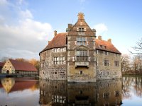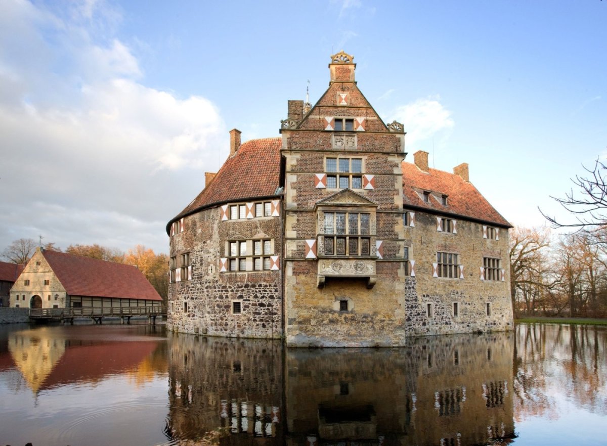 Die Burg Vischering ist eine der bedeutendsten Ringmantelburgen Deutschlands, wurde seit der Renaissance kaum baulich verändert oder ergänzt und hat ihren wehrhaften Charakter über die Jahrhunderte behalten – so stellen sich viele eine echte „Ritterburg“ vor. Sie ist zu- gleich ein Museum für alle Sinne und für alle Generationen. Die Dauerausstellung in der Burg erzählt von Menuetten und Banketten: Mehr als 750 Jahre Adelskultur werden hier anschaulich: Wie wurde früher Hof gehalten, wie wurde gelebt, gefeiert, aber auch gekämpft? Das alles wird mit modernsten Mitteln in Szene gesetzt – mit neuester Präsentationstechnik und ausgesuchten Exponaten, darunter das legendäre Halsband des Lambert von Oer, das dem Ritter im Jahr 1520 bei einem nächtlichen Überfall von seinen Feinden als Zwangsinstrument ange- legt wurde.