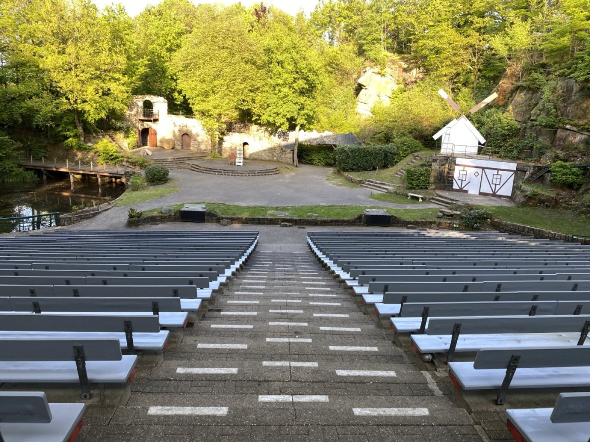 Die Bad Bentheimer Freilichtbühne allein ist schon eine imposante Erscheinung, da Zuschauerraum und Bühne ihren Platz in einem alten Steinbruch gefunden haben. Umrandet von hohen Sandsteinwänden, Wald und einem Teich vor einer alten Burgruine, bietet diese schöne Bühne im Sommer die perfekte Kulisse. Saison 2026 Besondere Merkmale ♿️ Barrierearm 💙 Herzsicher - Defibrillator und geschultes Personal vorhanden