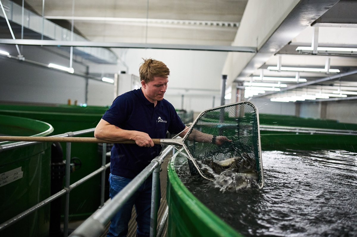 Mit Blick auf den Kaiser-Wilhelm wachsen unsere Fische unter besten Bedingungen heran. Eine geschlossene Indoor-Kreislaufanlage mit der Natur zum Vorbild schafft ganzjährig optimale Haltungsbedingungen für unsere Zander. In unserer Fischzuchtanlage unterstützen wir mit Technik natürliche Prozesse. Durch das Anlagendesign sind die Tiere darin und die Natur darum vor negativen Einflüssen geschützt. Wir kontrollieren ganz genau, was in unsere Anlage rein- und auch wieder rausgeht. Nahezu frei von Chemikalien, Medikamenten, angereicherten Schadstoffen wie Schwermetallen und Plastik ist unser Fisch nachweislich unberührt und rein. Konsequente Ressourcenersparnis durch minimalen Energie-, Wasser-und Futterverbrauch sowie Einsatz von 100% eigenen erzeugten grünen Strom aus Wind- und Solarkraft ist unsere Maxime. Das schützt die Umwelt, ist nachhaltig und schont die natürlichen Fischbestände. Besuchen Sie die größte und modernste Zuchtanlage dieser Art in Deutschland. Ganzjährig verfügbar können Sie nach Voranmeldung bei uns Zander als Filet oder ganzen Fisch kaufen. Zudem bieten wir regelmäßige Führungen durch die Zuchtanlage und Kochkurse rund um das Thema Zander an. Noch frischer, nachhaltiger und regionaler geht Fisch nicht. Vom Ei bis zum Filet garantiert aus Deutschland, das ist KAISERZANDER.