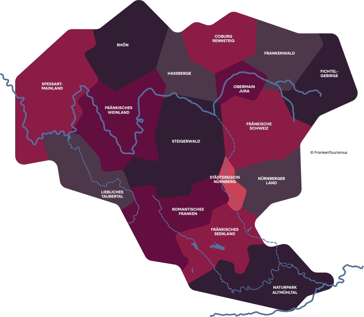 Lass dich von 16 individuellen Urlaubsregionen verführen – mitten im Herzen Deutschlands und Europas. Von Römern, Hohenzollern und Bischöfen. Die historischen Vermächtnisse aus vergangenen Epochen präsentieren sich stolz, teilweise entlang des Limes, mit fünf UNESCO-Welterbestätten. Prächtig und faszinierend zeigen sich die Residenzen und Schlösser der ehemaligen Markgrafen des Hauses Hohenzollern. In Franken treffen barocke Kulturschätze von Weltrang auf weite Landschaften, romantische Innenstädte, auf ländliches Brauchtum und Bier- auf Weinkultur.